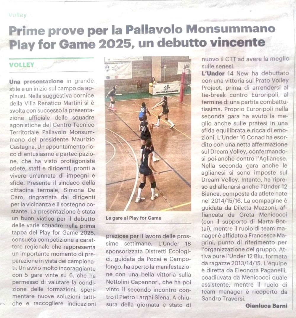 È uscito questa mattina sul quotidiano La Nazione l’articolo dedicato alla presentazione delle squadre agonistiche del CTT e all’inizio ufficiale del Play for Game 2025, che ha visto protagoniste nella prima tappa, le nostre squadre under 14 New, under 16 Conad e under 18 Distretti Ecologici. 💙🏐